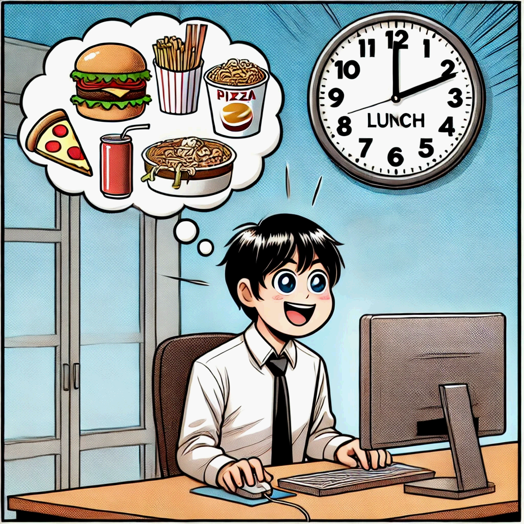 일하는 중에도 점심 시간이 다가오면 자연스럽게 맛있는 음식을 떠올리는 K직장인...
